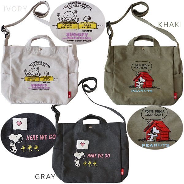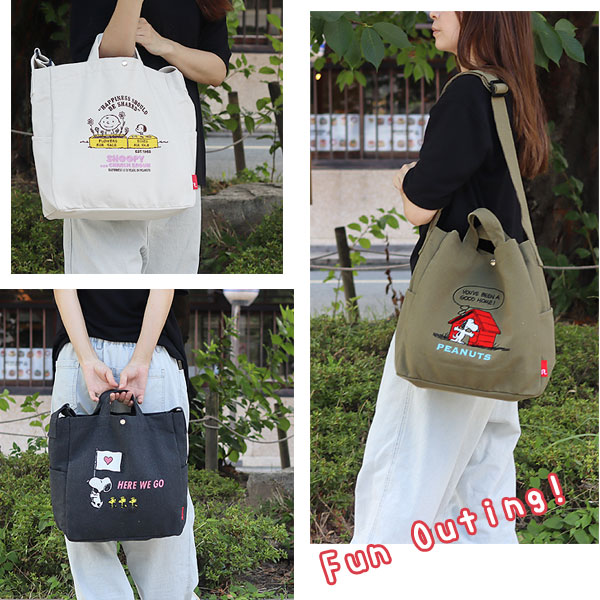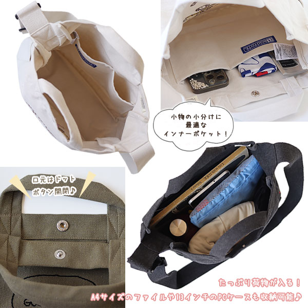 | リサイクルコットン使用のスヌーピー刺繍大きめ2WAYバッグ! |