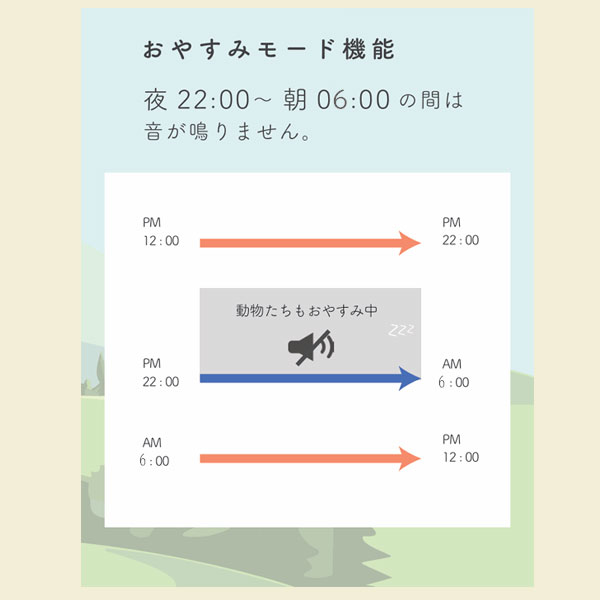 | 動物と鳥の可愛らしい鳴き声が響き渡るユニークな掛け時計 |