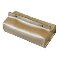 スナップボタンが両端についているので、まん中からティッシュボックスを入れボタンを止めるだけ。 出し入れもスムーズにできますよ。