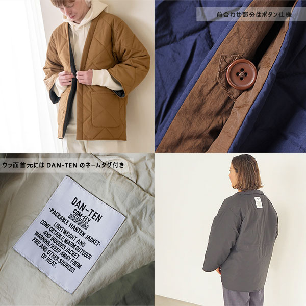 新たな冬の定番「DAN-TEN(暖纏)」シリーズの「COM-FLY(コンフリー)パッカブルはんてん」です。 両面使えるリバーシブル!!オモテ地とウラ地で違う印象を楽しめます。 収納や持ち運びにも便利な巾着付!アウトドアや旅行などのお出かけでも活躍しそうな暖かウェアです。 日本伝統の生活着である「はんてん」を現代的なスタイルにリプロダクトした、 ニュースタンダードな冬の羽織り。 軽量で快適な着心地で屋内はもちろん、アウトドアシーンなどの屋外でも使える パッカブルタイプのコンフリーシリーズ。 ミリタリーコートのライナーから着想を得たデザインで、ジェンダーレスなサイズ感に仕立てています。 DAN-TEN=【暖纏:ダンテン】 日本伝統の生活着であるはんてんの形状や特徴を活かし、 今のエッセンスを加えた冬の新たなスタンダードウェア。 ゆったりとした着心地、すっきりとした襟元。 重ね着しても窮屈にならないアームホール。 作業や家事がしやすい袖丈。 家で過ごす時、外に出る時もさっと羽織れる。 わたしたちの生活に寄り添い いつも心地良くあたためてくれます。