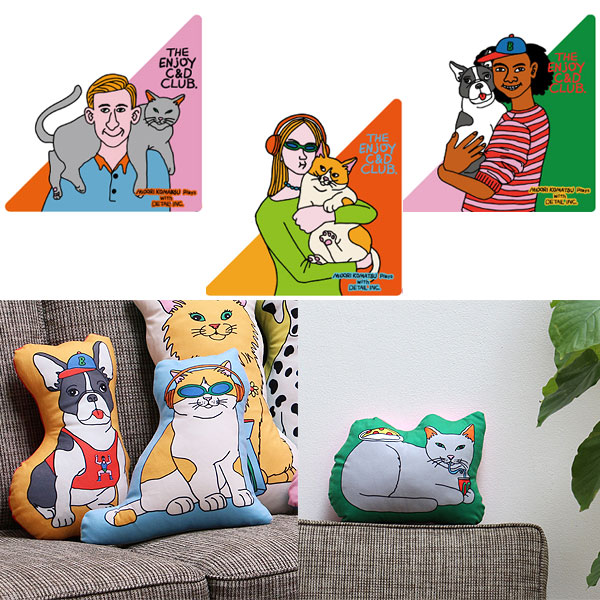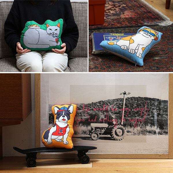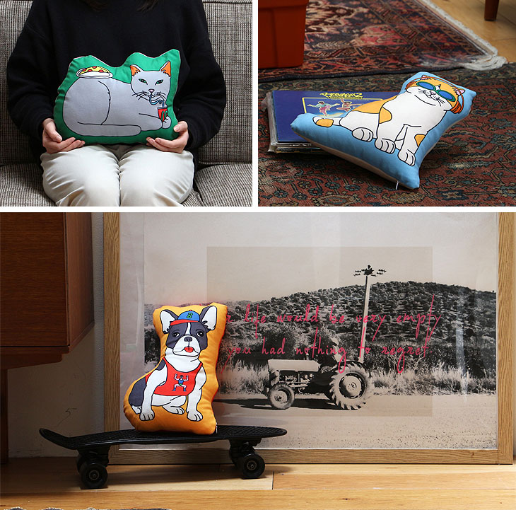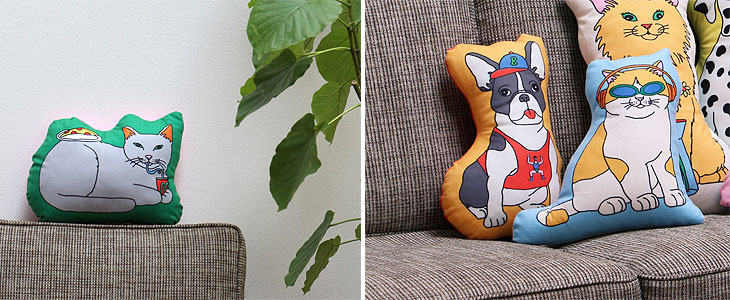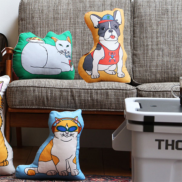 | ペットがエンジョイしている姿を描いたかわいらしいクッション! |