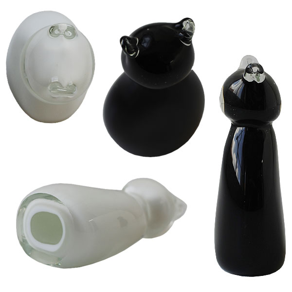 ひとつひとつが、個性を持つ猫 ひとつずつハンドメイドで制作したからこそ個体差があり、ひとつとして同じものはありません。 それぞれ違った色ガラスや気泡の出方や、耳や顔の大きさなどフォルムの違いは本物の猫のような個性です。 白・黒の2色展開で、部屋の中に複数体取り入れることで兄弟・姉妹のようににぎやかな印象になるのも面白いところ。