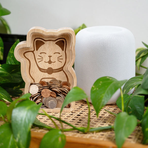| インテリアとして飾っておける中身が見える木製貯金箱 |