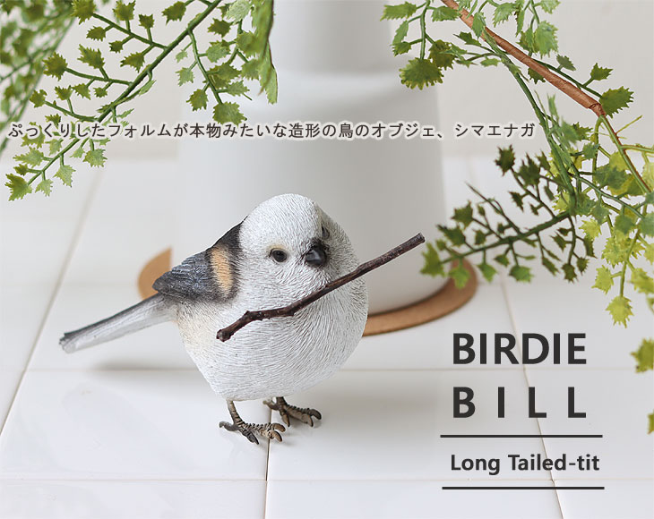 小枝を咥えているような造形がとってもリアルな鳥の置物「BIRDIE BILL」。 ぷっくりしたフォルムが本物みたいな造形の鳥のオブジェ、シマエナガが仲間入り♪ お部屋に置くだけでインテリアの幅も広がり、ホッと癒されそうな可愛さです。 思わず触れてしまいそう♪ 実際にペットを飼えないお宅にもおすすめです。 くちばしの下にマグネットがついていますので、メモを挟んだクリップをくっつけてメッセージバードの代わりにしたり、玄関に飾って小さな鍵をくっつけても便利です。