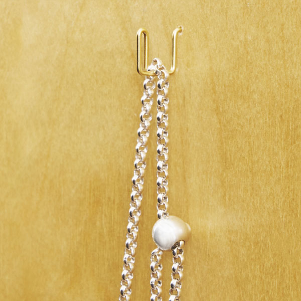 一本の線を曲げるという発想から生まれたフォルムは、壁に「掛ける」という機能をもたらします。