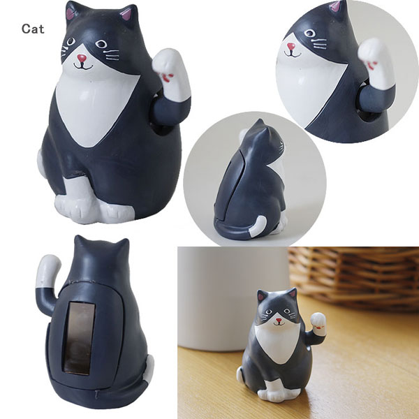 | ソーラーパネルに太陽光が当たると手を振るユニークオブジェ |