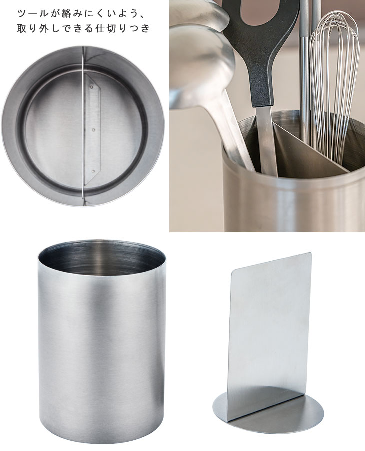 | 仕切り付き!お玉や菜箸など大きめキッチンツールがたっぷり入る |