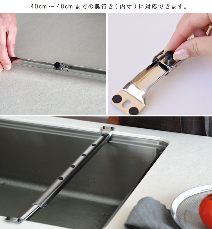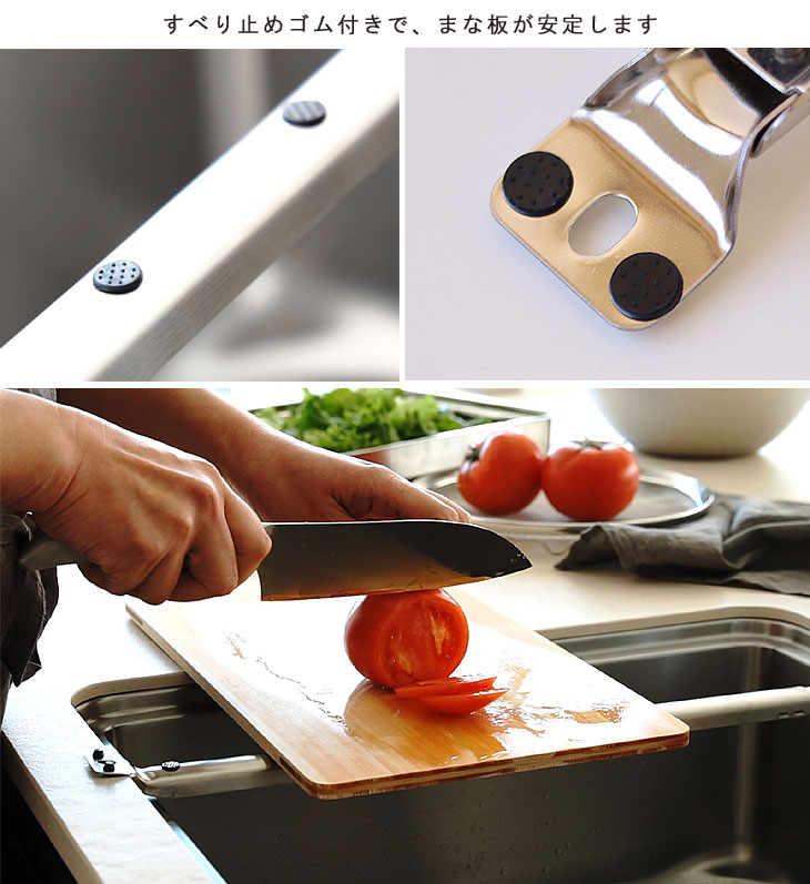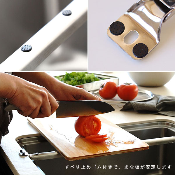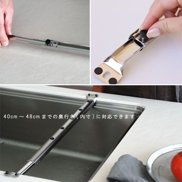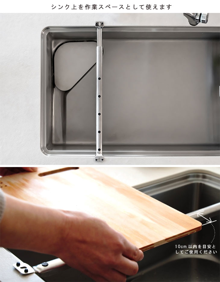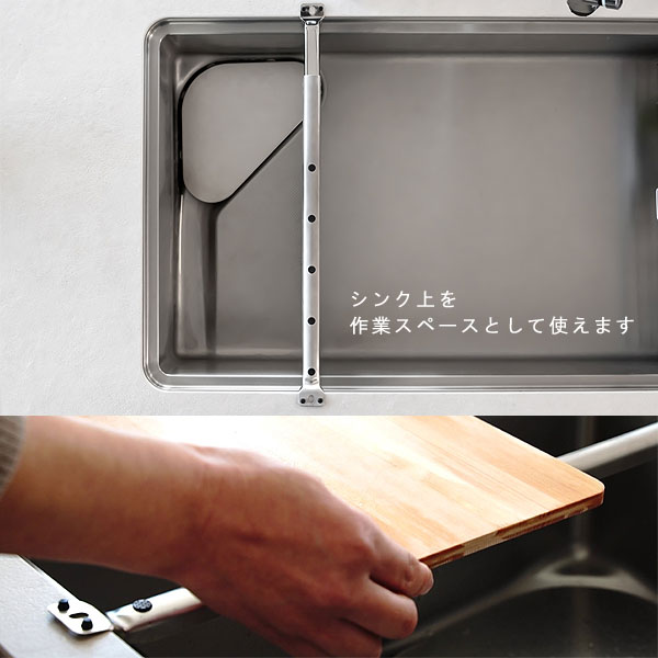 | 長さ調節可能。シンク上を作業スペースとして使えるグッズ |