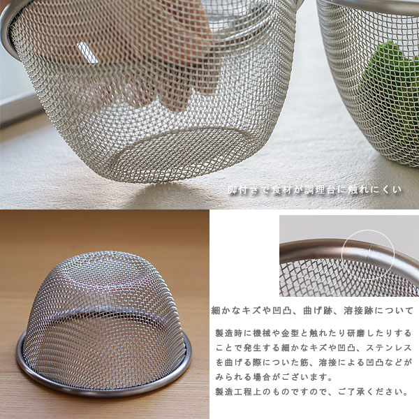 | 食材の水さらしや卵液濾しといった下ごしらえに便利なザル |