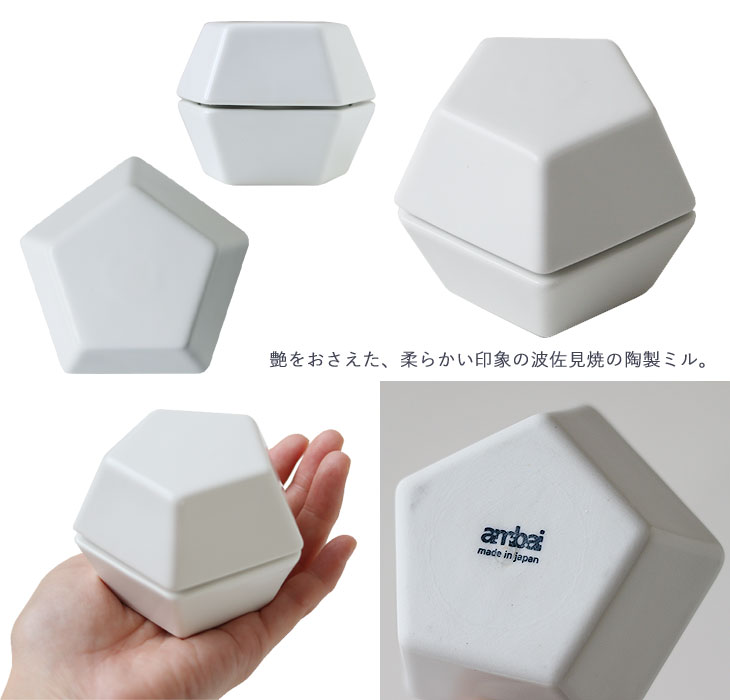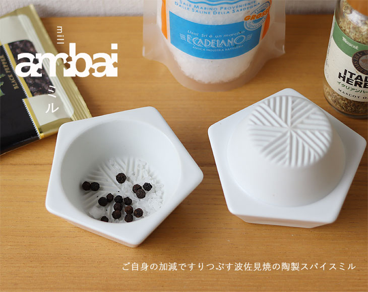 ![]() 箸置きから建築まで生活に関わる全てのデザインを手掛ける小泉誠氏のambaiシリーズから、ミルが登場いたしました。 日本のものづくりにこだわり、作り手とデザイナーが試行錯誤しつくりあげるambaiシリーズは、その名の通り、使い手にいい塩梅(ambai)の道具を提供します。 艶をおさえた柔らかい印象の白釉薬を施した波佐見焼の陶製ミルは、ご自身の加減ですりつぶすミルです。 お好みのスパイスを、好みの細かさを見ながら、香りも楽しみながら「いい塩梅」にお料理の時間を。 ![]()