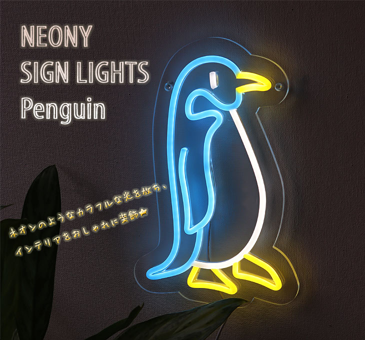 | ポップでおしゃれなネオンサイン風ペンギンライト! |