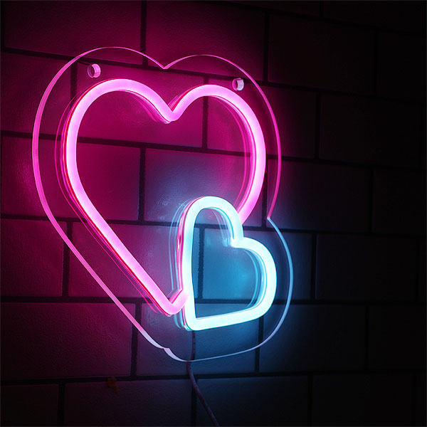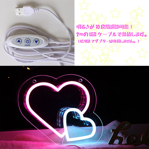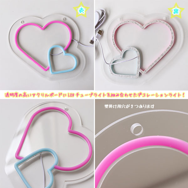 | アクリル板にLEDチューブライトのハートデコレーションライト♪ |