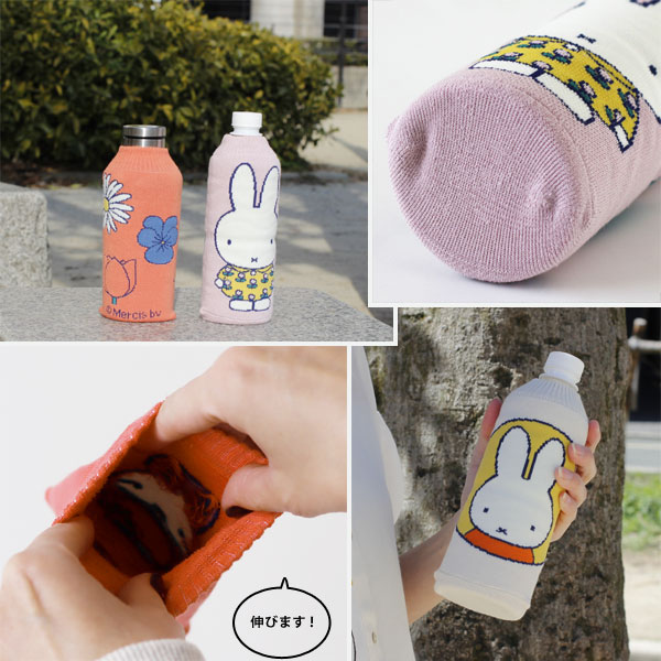 ディック・ブルーナでおなじみのミッフィーのボトルカバーです。 全面に描かれたミッフィーフェイスが、なんとも愛らしい一品♪ もちろん裏にもかわいいイラストがありますよ。 ファミリーで色違いに持ってもかわいいです。 伸縮性のあるニット素材で、ペットボトルだけでなく様々な形状のボトルに対応します。 傷つき防止カバーとしても使用出来ます。是非お気に入りを持ち歩いて下さい。