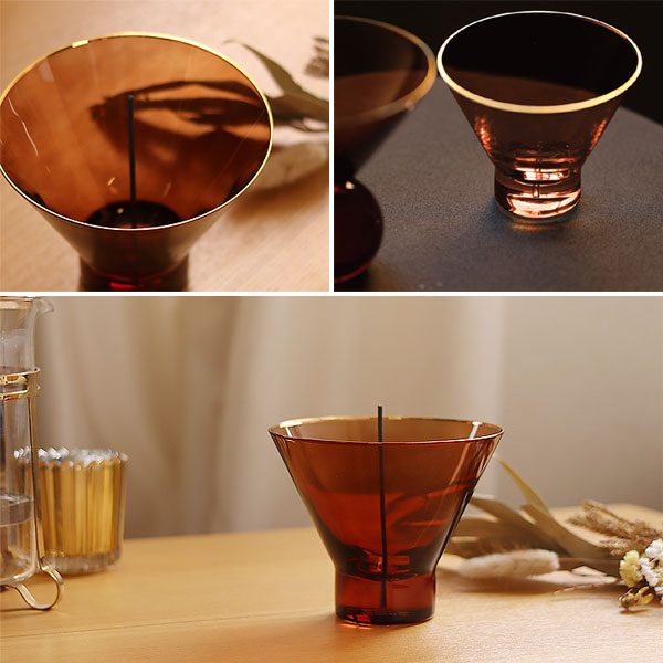 グラスのフォルムがまるでオブジェのように美しいお香立て。 受け口が広く灰がこぼれないのでテーブルも汚しません。 燃え尽きるまでの儚さを、優雅な時間に…おしゃれでクラシカルな雰囲気を纏わせて、そこにあるだけで様になります。