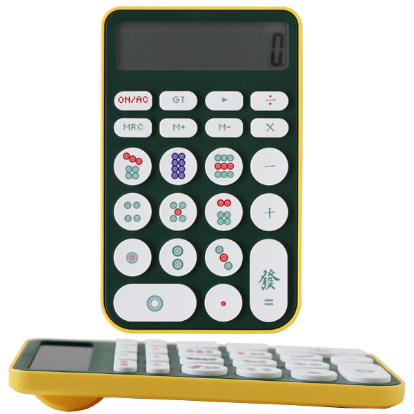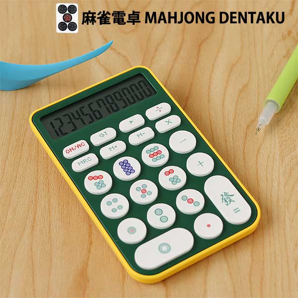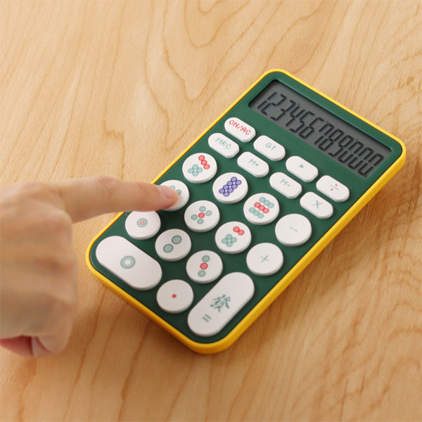 筒子(ピンズ)デザインのボタンが特徴的な麻雀電卓。 ただの計算機に遊び心を。