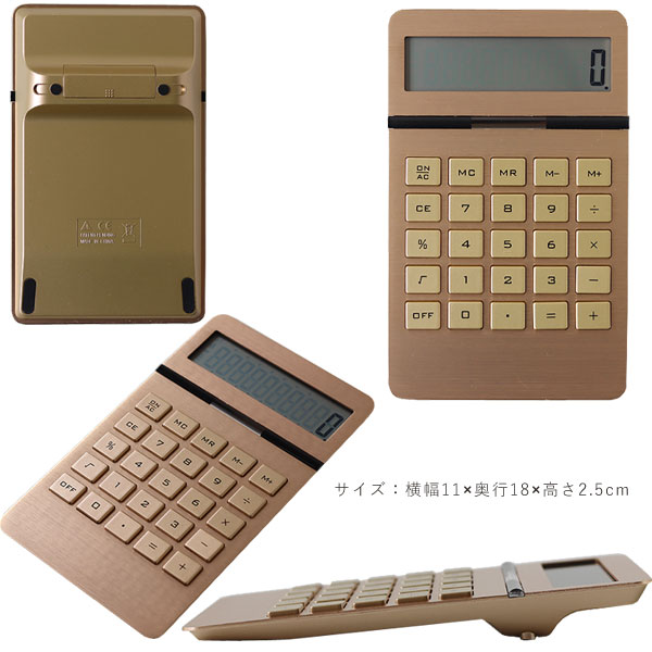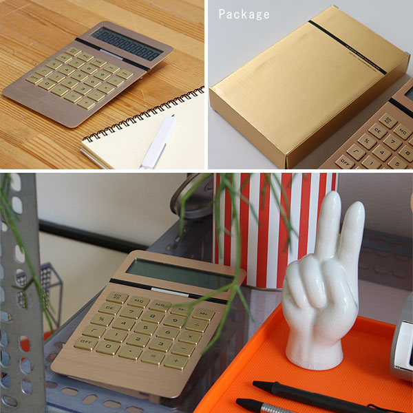定数計算、メモリー計算、連続計算、簡易相互計算、ルート計算、パーセント計算、自動パーセント計算、パーセントを使った計算ができます。 結果表示が見やすく、ボタンも押しやすい。 ![]() パッケージもゴールドで、ギフトにもおすすめ。 普段の生活に、事務仕事に、ショップでも。 毎日使うものではないけれど、モチベーションのあがるデザインが日常を豊かにしてくれます。 |
