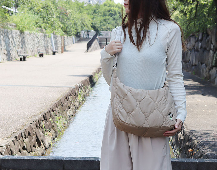 | やわらかキルティングの洗えるスヌーピーショルダートートバッグ |