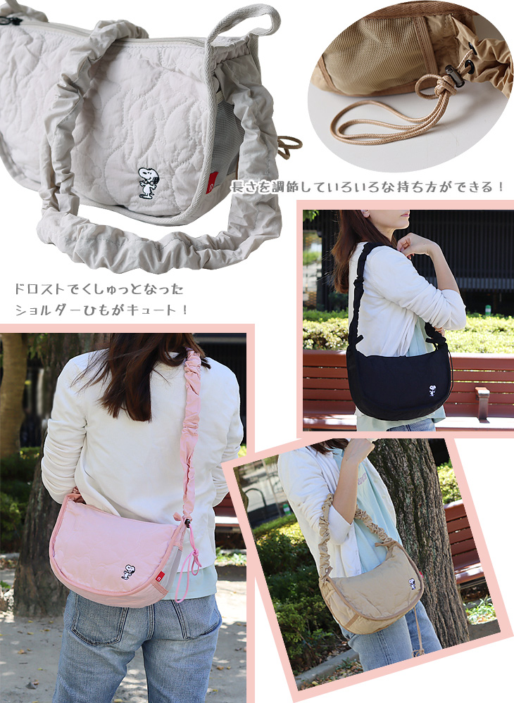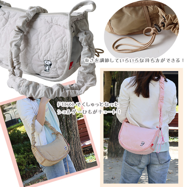 | スヌーピーキルティングがかわいい!調節可能なショルダーバッグ |