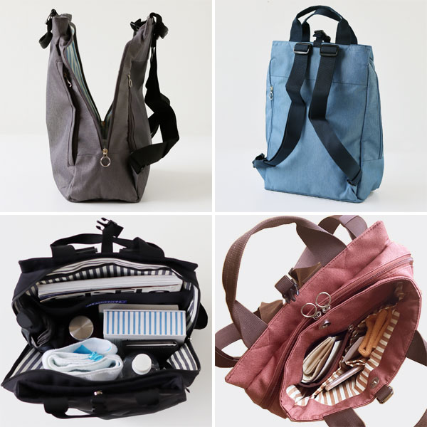 リュック、トートバッグの2WAYでその日の気分やシーンに合わせて持ち方を変えられます。 背負ったときでも、手に持った時でも、体に寄り添いしっくりくる形です。 普段のお出かけはもちろん、小旅行やサイクリングなどにも♪