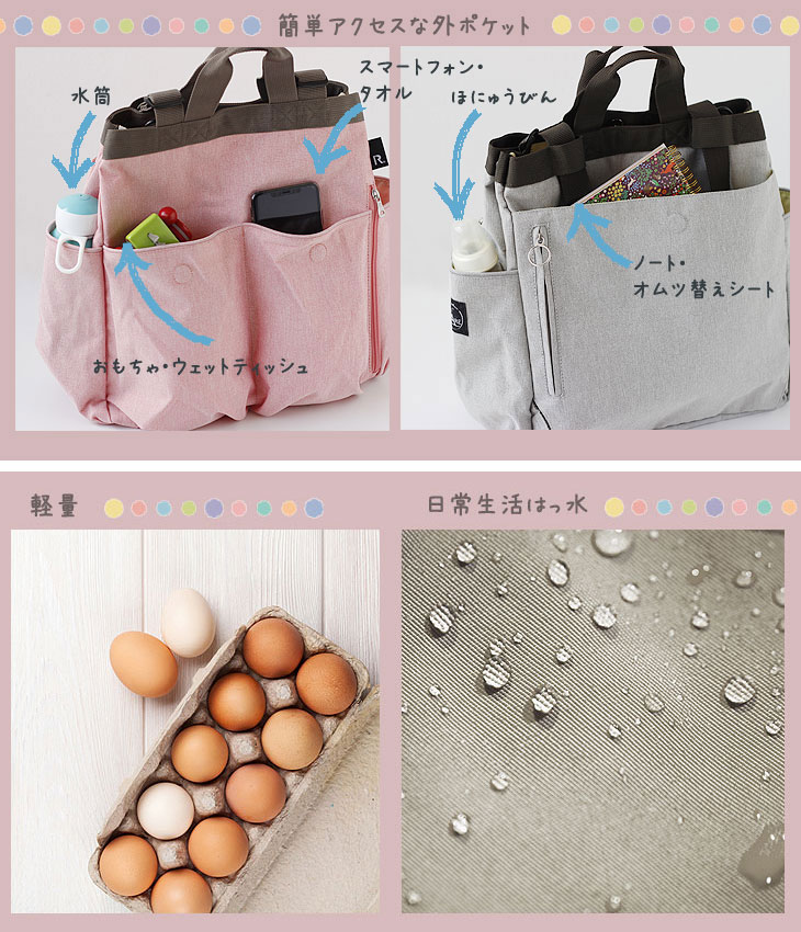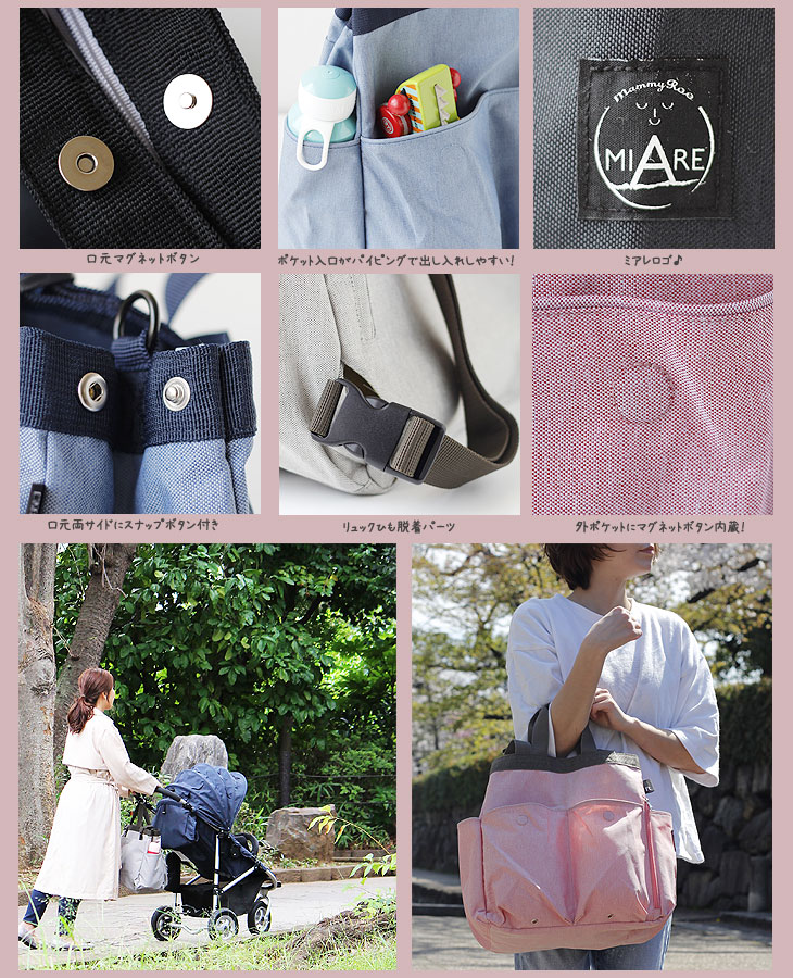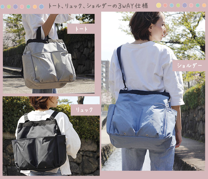| トート・ショルダー・リュック3WAY!ポケット充実NEWママバッグ |