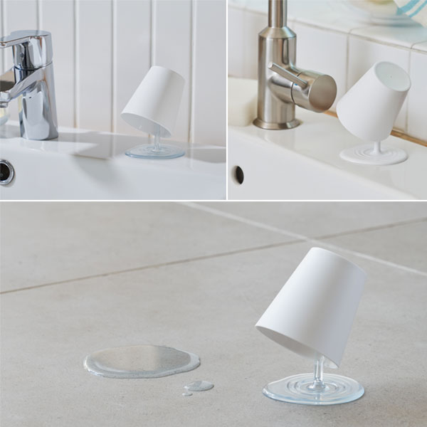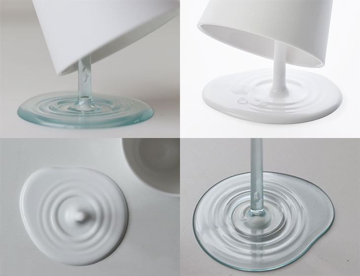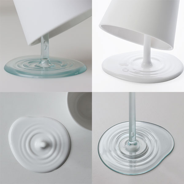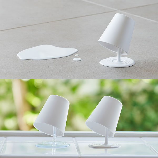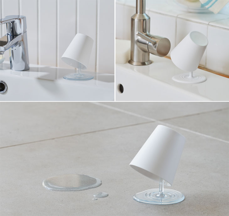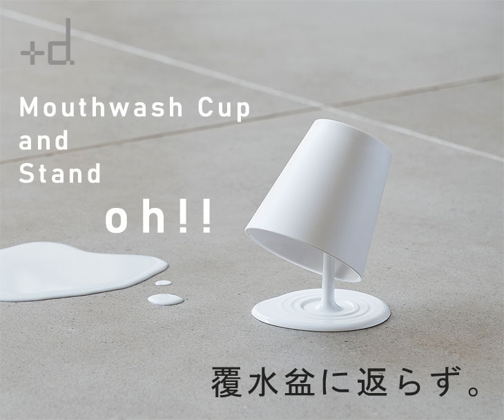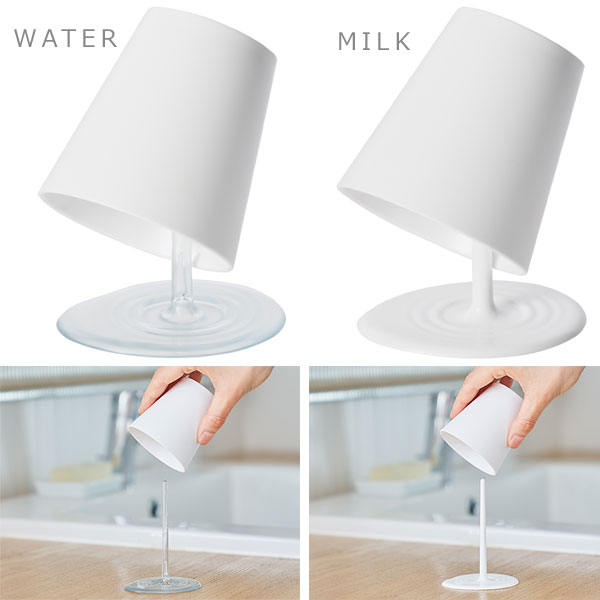 | 液体がこぼれているように見えるうがいコップとスタンド |