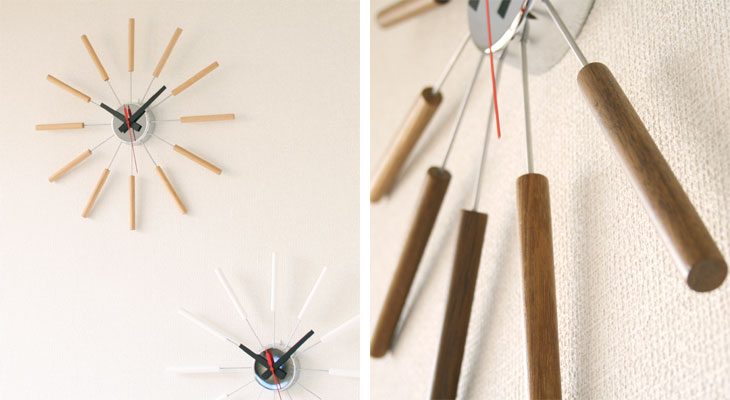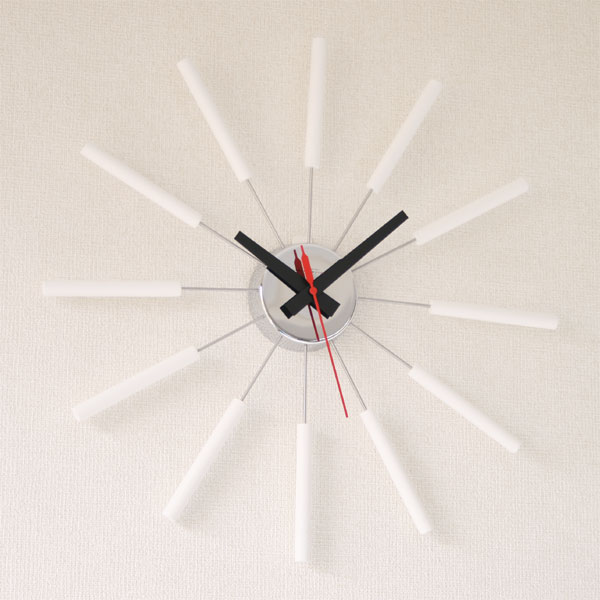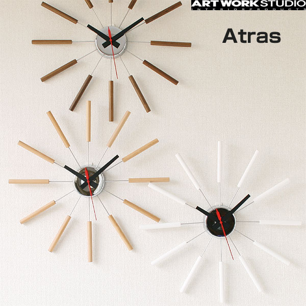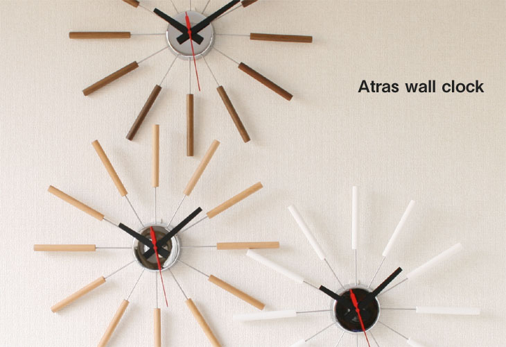 周囲をかこむ外枠がなく広がりあるフォルムが特徴的なアトラス。 中央から放射線状に華開くようなデザインは大ぶりで存在感があります。 パッと目を惹くステキなデザインでお部屋のインテリアにもピッタリ。 お部屋の雰囲気をスタイリッシュでオシャレにしてくれるステキな時計ですよ♪