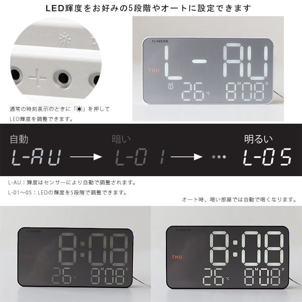 トップページ >> 置時計 >> SLOWER LEDクロック Cielo アルミヘアラインディスプレイ |