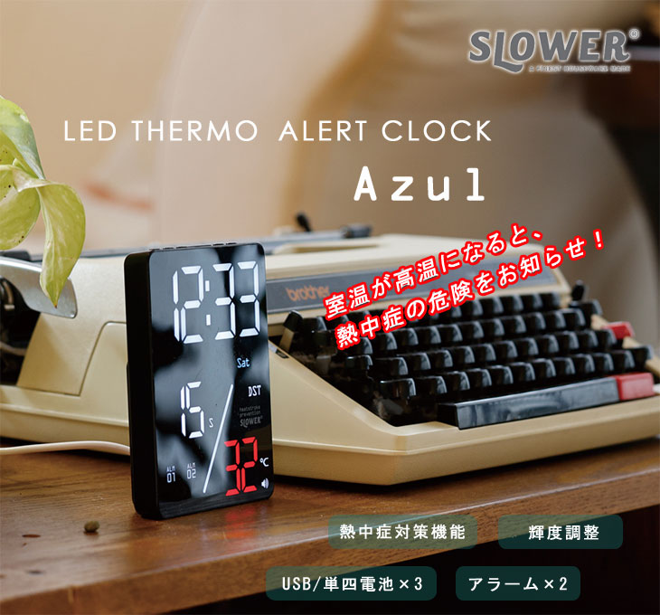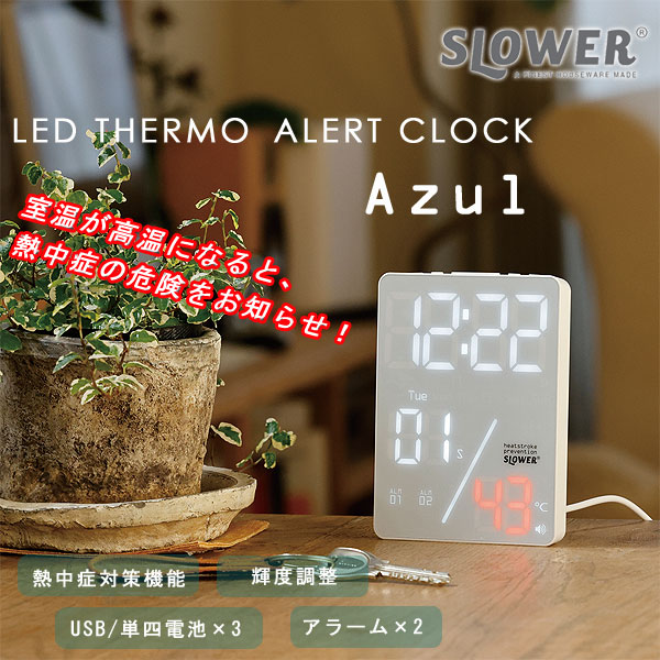 トップページ >> 置時計 >> SLOWER LED サーモアラートクロック Azul |