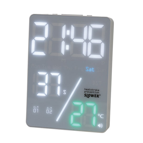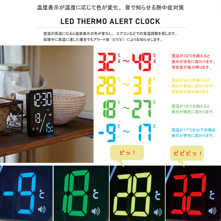 | 音と表示色により熱中症の危険をお知らせ!LEDデジタルクロック |