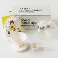 KONO式(コーノ)式とは、珈琲サイフォンを世界で初めて開発した人物、珈琲サイフォン株式会社の社長「河野」さんの名前です。 おいしいコーヒーを入れるために長年研究し、考案されたドリッパーなのです。 「KONO式名門ドリッパー」は、もともとはコーヒー専門店で愛用されていたプロ用ドリッパーです。 コーヒー好きの方たちの間で評判になり、一般にも販売されるようになりました。 KONO式名門ドリッパーはその機能だけではなく、デザインもとてもかわいいのが大人気の秘密。 ぽってりと丸いコーヒーポットに、いろいろなカラーのハンドルが印象的です。 オシャレで機能性も豊かなドリッパーだから、コーヒーを入れるのがとっても楽しくなりそう♪