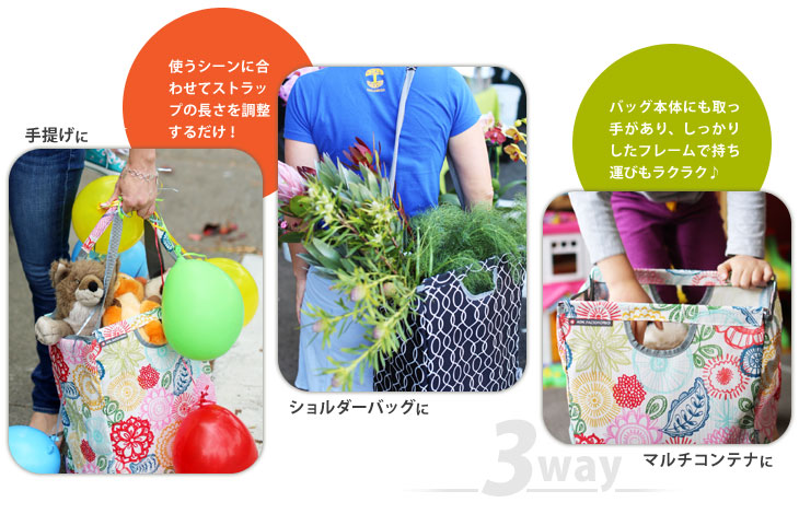 | 丈夫で水にも強い!持ち方3wayの使えるマイバスケットでおでかけ |