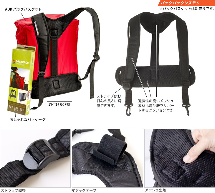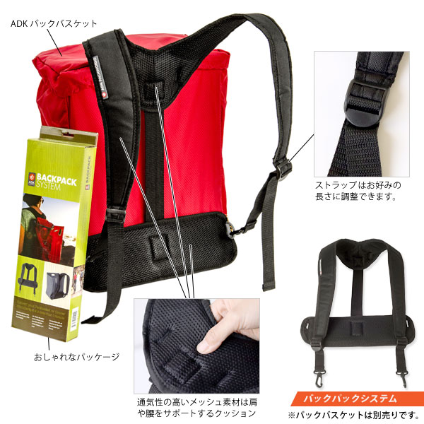 | ADKパックバスケットのアクセサリー♪背負えるバッグにできる |