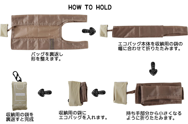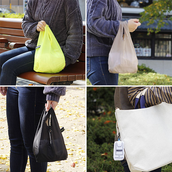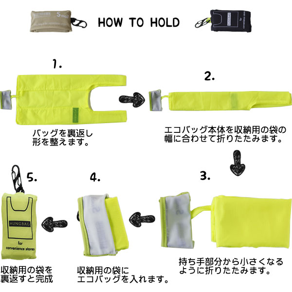 目的を持って訪れるスーパーマーケットへのエコバッグ持参は今や常識となりつつありますね。 では毎日のように何気なく買い物をするコンビニエンスストアではいかがでしょうか。 ついついレジ袋を買ってしまうという方も多いのでは? とは言えスーパーマーケットで使うような大型のエコバッグを常備するのは少し負担になってしまいますね。 HUNGBAGは軽量・コンパクト・ウォッシャブル! エコバッグの携帯が負担にならない、コンビニエンスストアに適したマイバッグです。