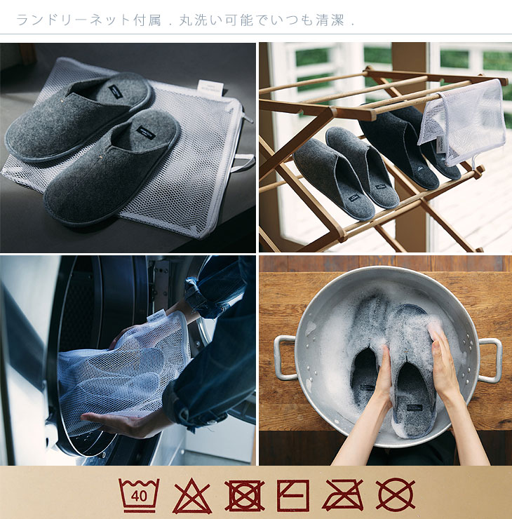 | 洗濯機で丸洗いができるフィット性の高いシンプルなスリッパ |