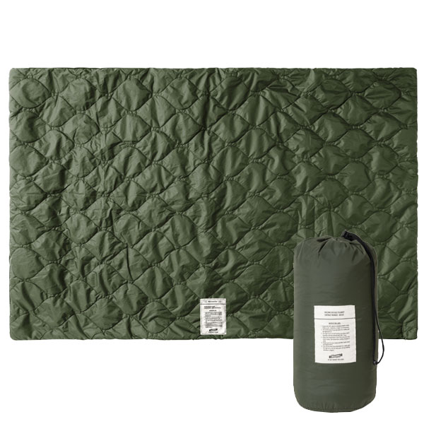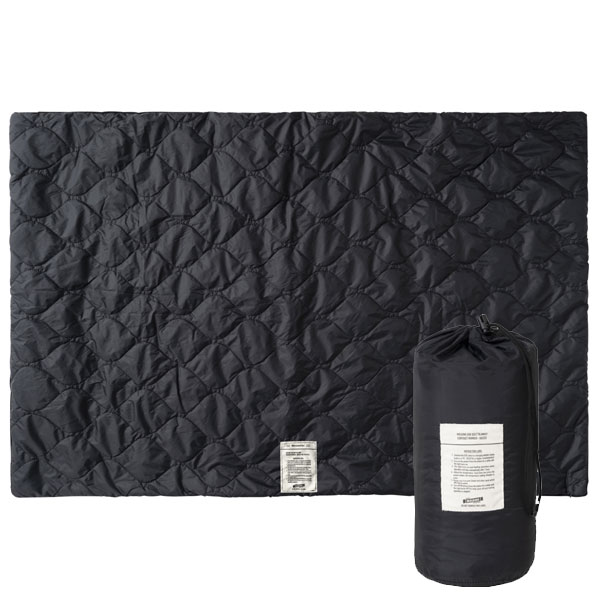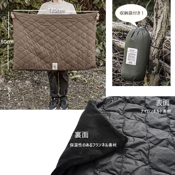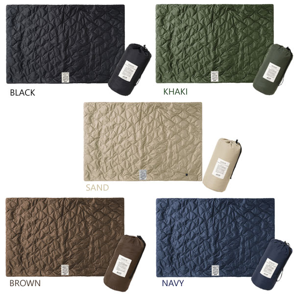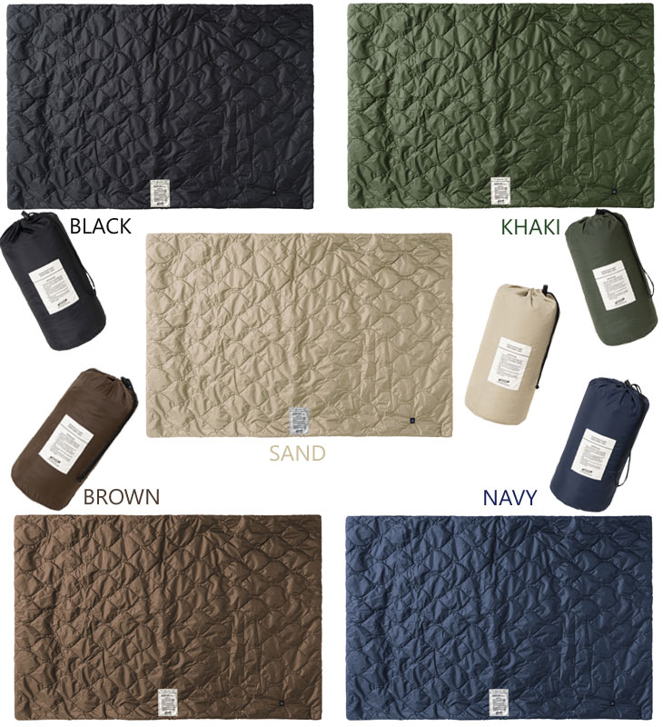 BLACK、KHAKI、SAND、BROWN、NAVYの5カラーです。 表面は生地と生地の間に中綿を挟み込んでいるキルティング。 曲線のあるオニオン型のステッチ♪ キルトライナーのような素材で、ジャケットを着ているようなファッショナブルなブランケットです!