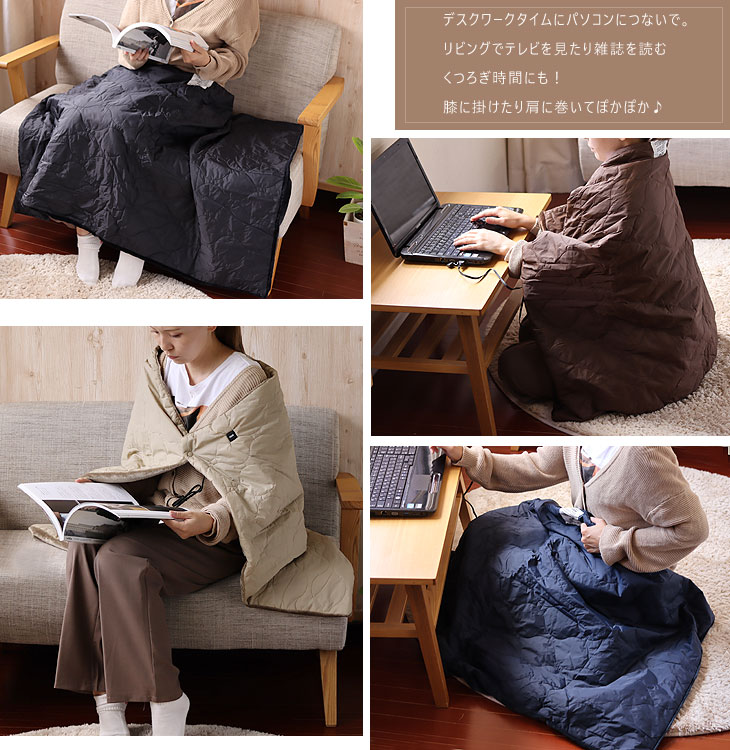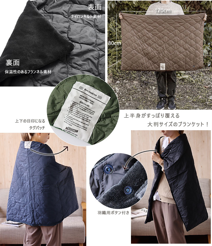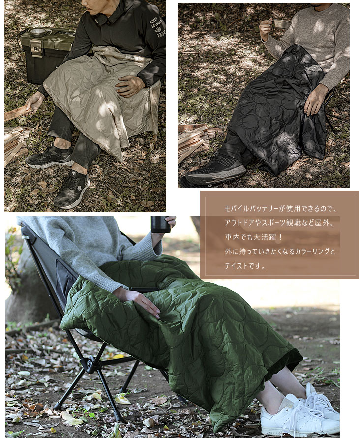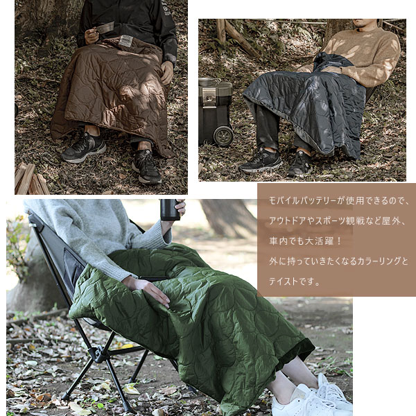 | USBでヒーターが温まるアウトドアが似合うキルトブランケット |