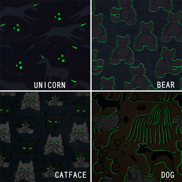 暗闇で輪郭が光るBEAR柄と、眼が光る猫柄に角と星が光るUNICORN。 こどもたちも喜びそうですね。。 どちらも欲しくなっちゃうデザインです♪ ボタン付なので、羽織るときに重宝します。