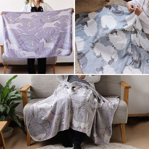 マシュマロのような手触りがとってもやわらかくて気持ちいいんです。 感触とデザインに癒されそうですね♪ さらっとした気持ちいい感触。 サイズは横120cm×縦80cmです。 いつでもどこでも使える優秀なブランケット。 学校に。オフィスに。車に。公園などでの読書にもぴったり♪ お子様のお昼寝や、ベビーカーに積んでおいて、赤ちゃんの防寒にも。 お部屋でブランケットを使って、暖房の設定温度を少し下げるとちょっぴりエコにも繋がります。 寒い季節に限らず、夏場の冷房対策にもおすすめですよ◎