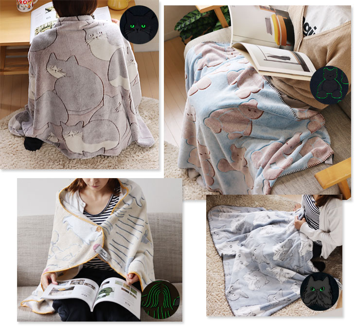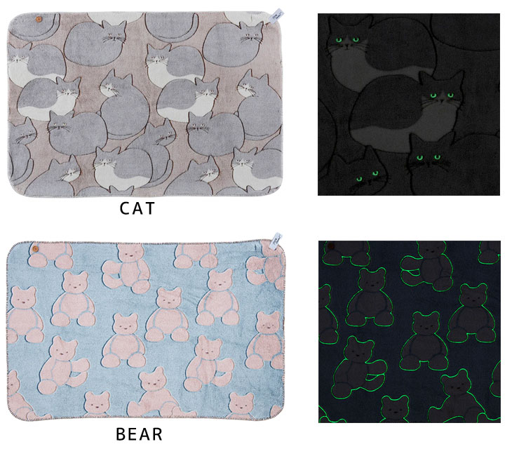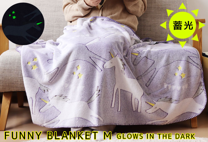 やわらか〜いマイクロフリース素材で、さわり心地もバツグン! そこそこ大きめサイズなので、冷えがちな足元やお腹、肩もすっぽり包んでくれますよ。 ファニーブランケットは蓄光プリントが施されてるので、暗闇で柄の一部が光るユニークさも持ち合わせています。