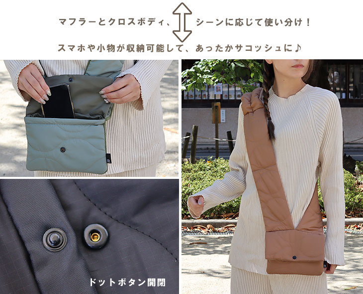 | マフラーなのに斜め掛けバッグになる!シーンに応じて使い分け |