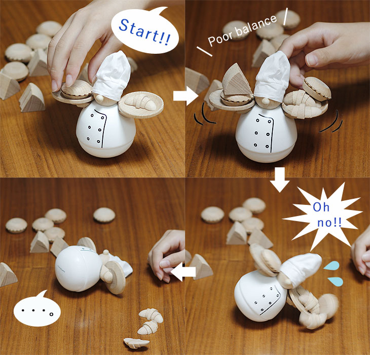 | パンやケーキを落とさず積み上げる!木製バランスゲーム |