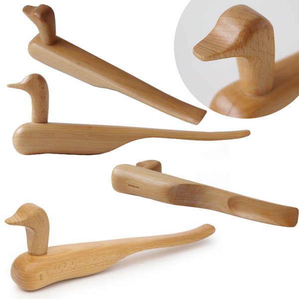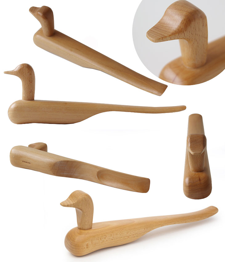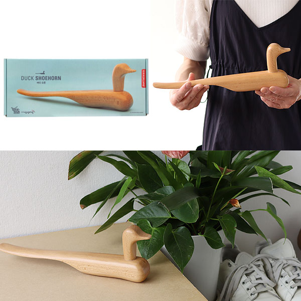温かみのある素材、なめらかな曲線、モダンなデザインがお部屋や玄関のインテリアにぴったりです。 木の風合いを活かした、色を付けないシンプルさが◎ ※本来の用途以外に使用しないでください。 ※天然木を使用しており色味や木目には個体差がございますのでご了承ください。 ![]() 韓国では、新婚夫婦に彫刻された木製のアヒルを贈るそうです。 生涯の幸せと時代を超越した愛への願いを体現しています。 そんなアヒルの靴べらは、手に馴染み、するっとかかとを滑らせやすくなっています。 シューズボックスや、上がり框に置いておくだけでオブジェのような佇まい! 日常で使うふとしたものも、こんな楽しいグッズにするだけでぐっとおしゃれで気分も上がります♪ ![]() |