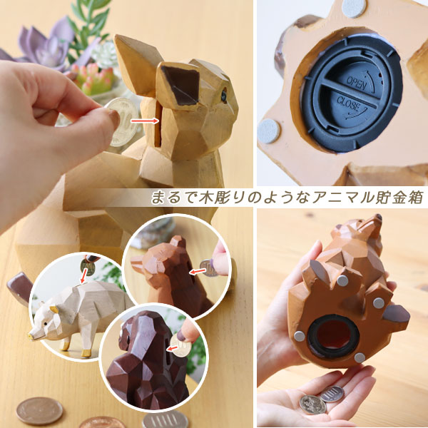 | 小さな幸せも一緒に貯まる♪かわいい木目調のアニマル貯金箱 |