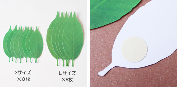 ![]() サイズはSサイズとLサイズの2種類。Sサイズは8枚、Lサイズは5枚入りです。 Leafの裏面に再剥離シールが付いているので簡単に貼り付け出来ます。