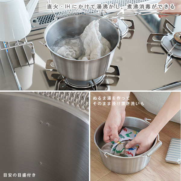 | 直火/IHOKつけ置き・煮沸消毒・掃除色々使えるステンレスバケツ |