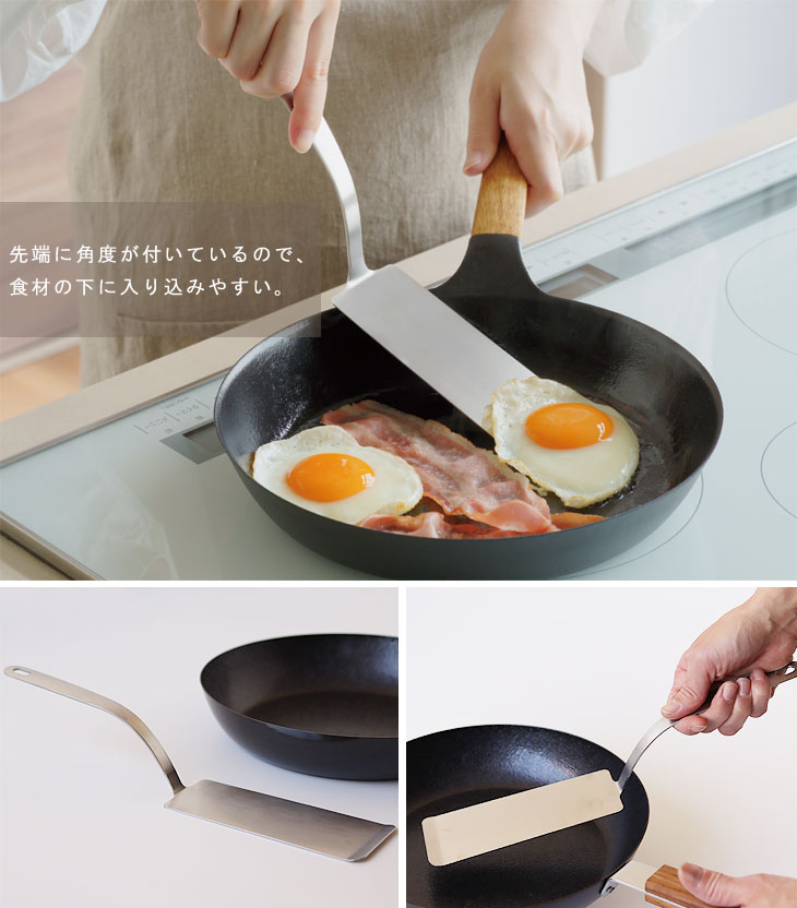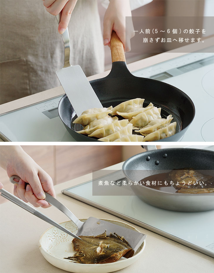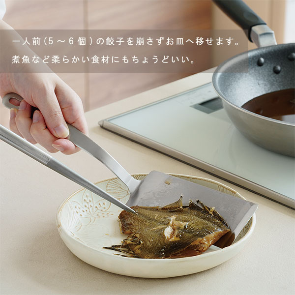 | 長いヘラで餃子や煮魚をきれいにお皿に移せるステンレスターナー |