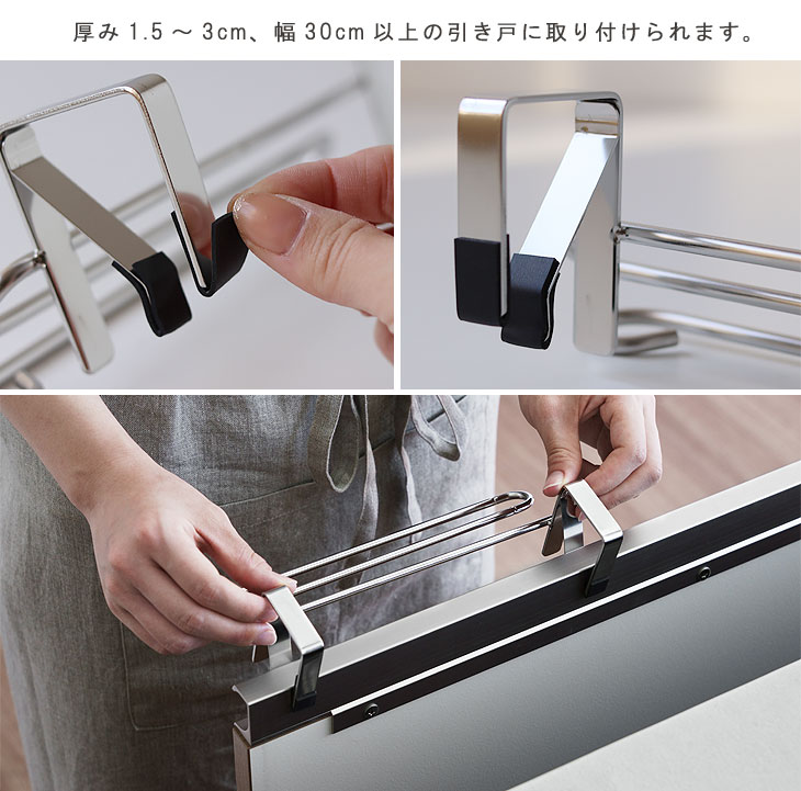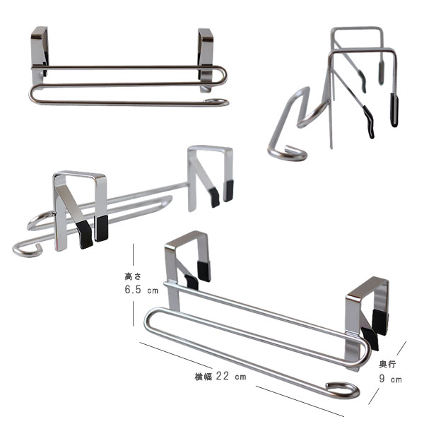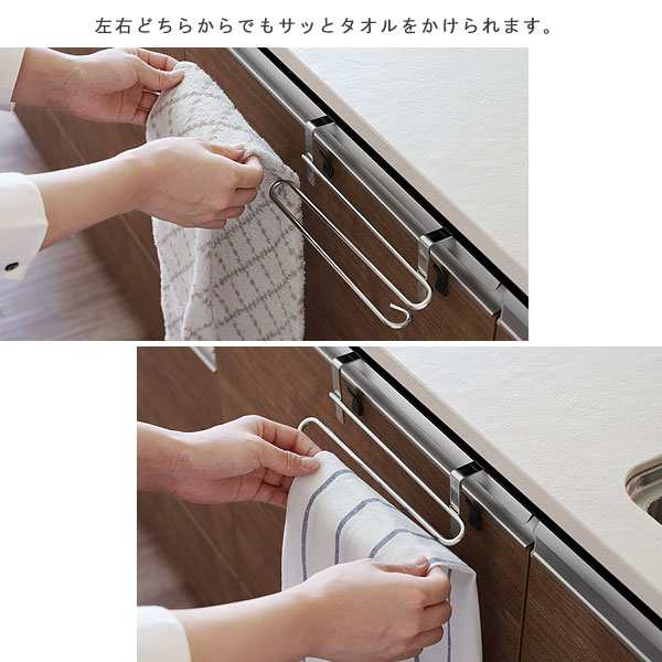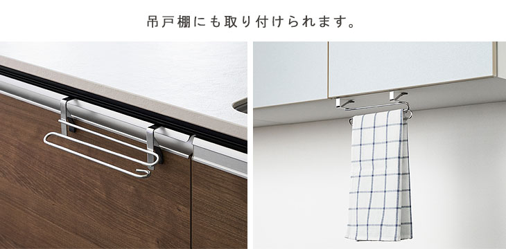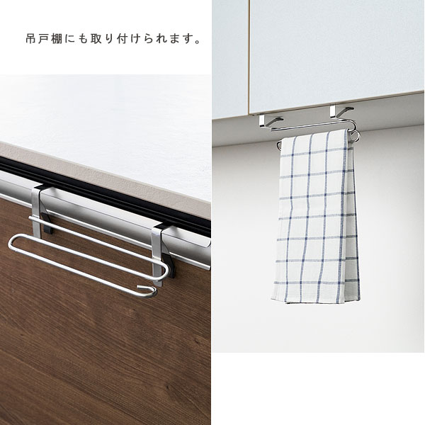 | 引き戸や吊戸棚に付けられる乾きやすいステンレスタオルハンガー |