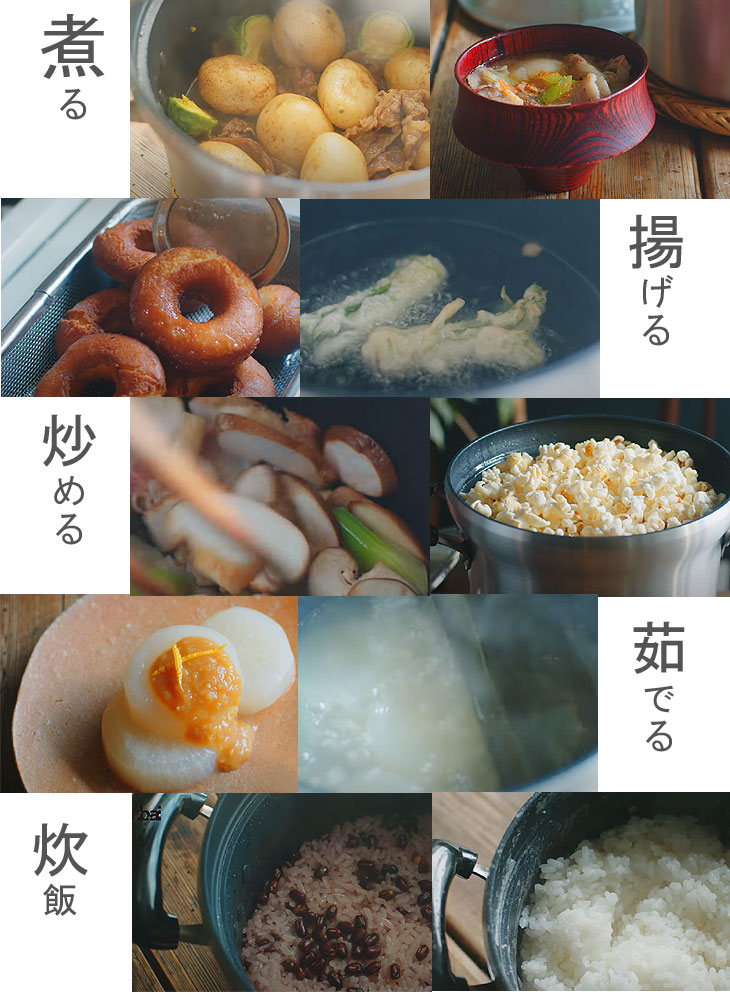 | ご飯はもちろん煮物や汁物蒸し物にも活躍する文化鍋 |