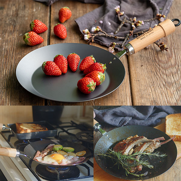 | クレープや薄焼き卵などが焼きやすい特殊熱処理の鉄フライパン |