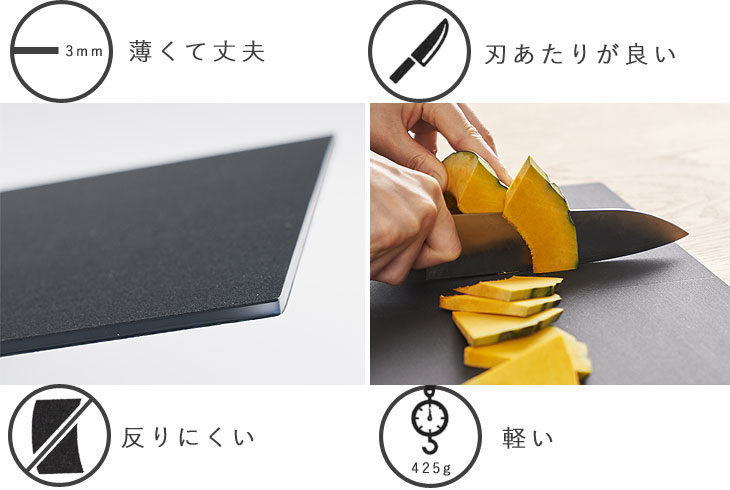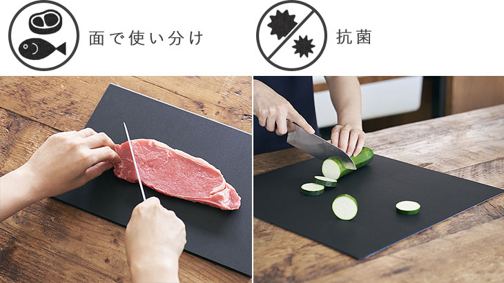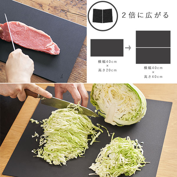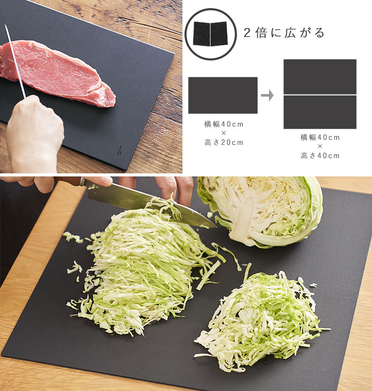 | 大きく広がり食材もこぼれ落ちにくい!折りたためる大判まな板 |